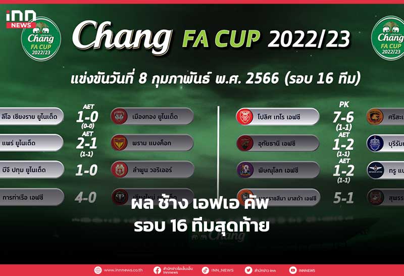 สรุปผลการแข่งขัน ฟุตบอล ช้าง เอฟเอ คัพ รอบ 16 ทีมสุดท้าย