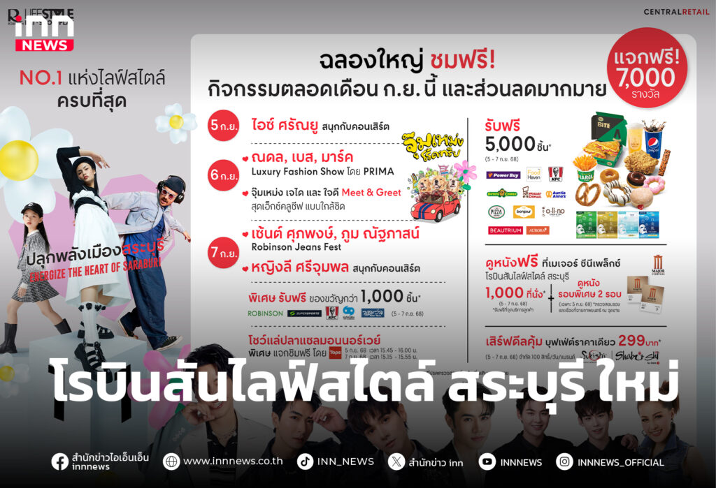 เตรียมพบกับ โรบินสันไลฟ์สไตล์ สระบุรี โฉมใหม่ No.1 แห่งไลฟ์สไตล์ครบที่สุดของสระบุรี ฉลองใหญ่ แจกฟรี! 7,000 รางวัล