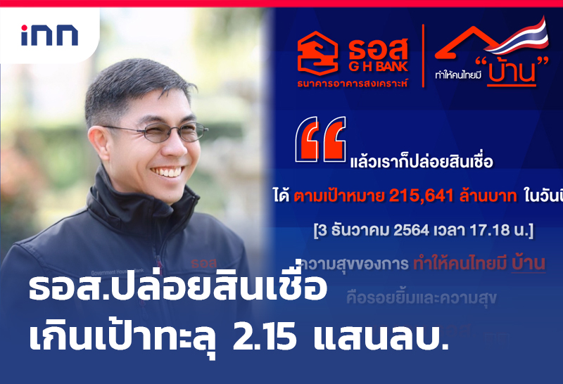 ธอส. ปล่อยสินเชื่อเกินเป้า ปล่อยได้แล้ว 215,701 ล้านบาท คาดสิ้นปีปล่อยได้ถึง 240,000 ล้านบาท สูงสุดในรอบ 68 ปี