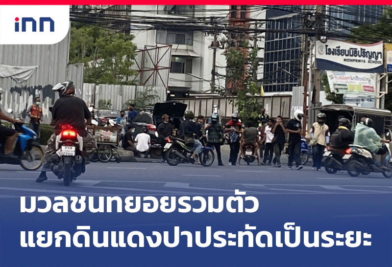 เริ่มแล้ว! มวลชนทยอยรวมตัวแยกดินแดง ขว้างประทัดเสียงดังเป็นระยะ ขณะยังไม่พบการปะทะกัน