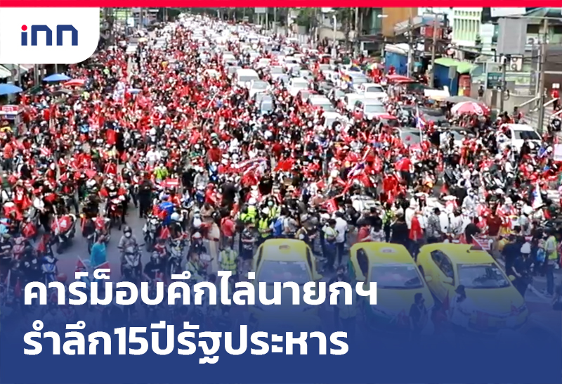 คาร์ม็อบคึกคักรวมตัวแยกอโศกมนตรี ขับไล่นายกฯรำลึก15ปีรัฐประหาร ขับTAXI ชนรถถังจำลอง ตร.เข้ม