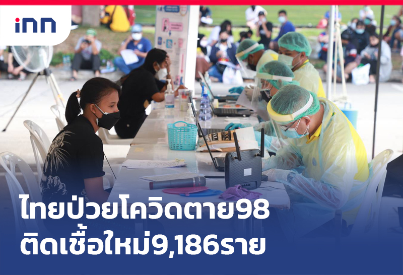 ตายสูงสุด! ป่วยโควิดเสียชีวิต 98 ราย ติดเชื้อใหม่ 9,186 สะสม 372,215 รักษาหาย 5,543 รักษาในโรงพยาบาล 103,056 คน