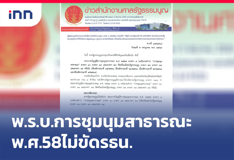 ศาลรธน.ตีความ พรบ.การชุมนุมสาธารณะ พ.ศ. 2558 มาตรา 4 มาตร 10 มาตรา 14 และ มาตร 28 ไม่ขัดต่อรัฐธรรมนูญ