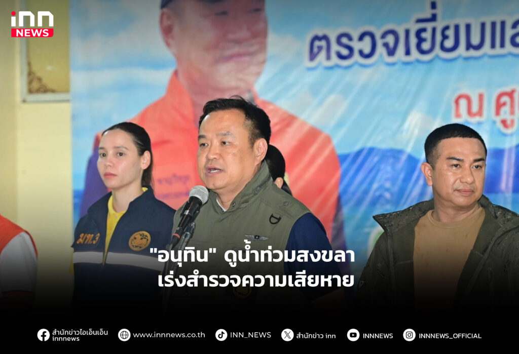 "อนุทิน" ดูน้ำท่วมสงขลา เร่งสำรวจความเสียหาย จ่ายค่าชดเชย คาดว่าปัญหาจะคลี่คลายตั้งแต่วันที่ 1 ธันวาคมเป็นต้นไป