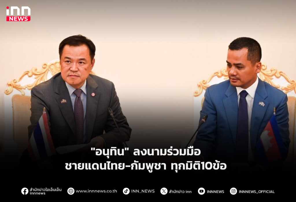 "อนุทิน" ลงนามร่วมมือชายแดนไทย-กัมพูชา 10 ข้อ หวังส่งเสริมความสัมพันธ์ ความร่วมมือทุกมิติระหว่างจังหวัดชายแดนสองประเทศอย่างยืน ย้ำ ปชช.ได้ประโยชน์เพียบ ทั้งแก้ปัญหายาเสพติด อาชญากรรมออนไลน์ -คอลเซ็นเตอร์