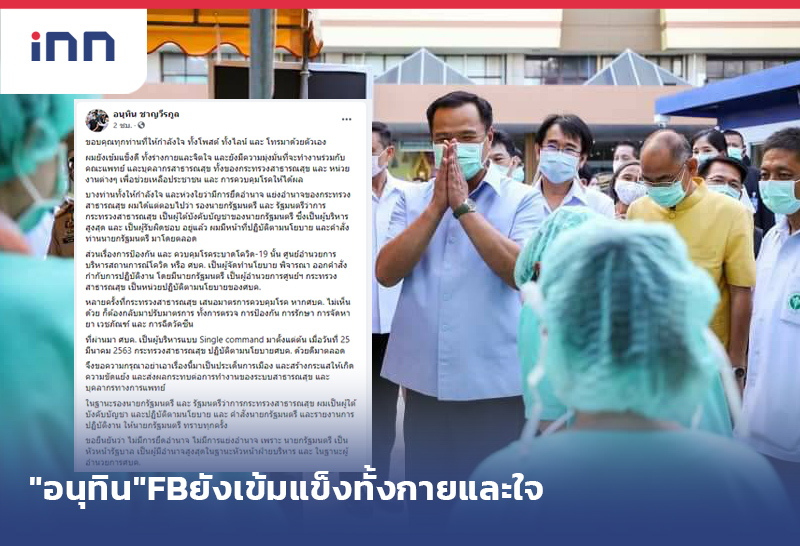 "อนุทิน" โพสต์เฟซบุ๊ก ยังเข้มแข็งทั้งกายและใจ พร้อมมุ่งมั่นทำงานร่วมกับคณะแพทย์