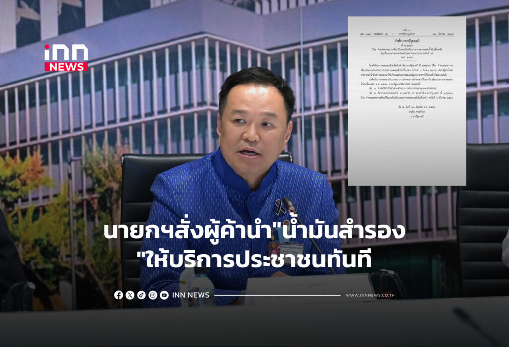 "นายกฯ อนุทิน" ออกคำสั่ง ให้ผู้ค้านำ “น้ำมันสำรอง” ออกให้บริการแก่ประชาชน มีผลทันที