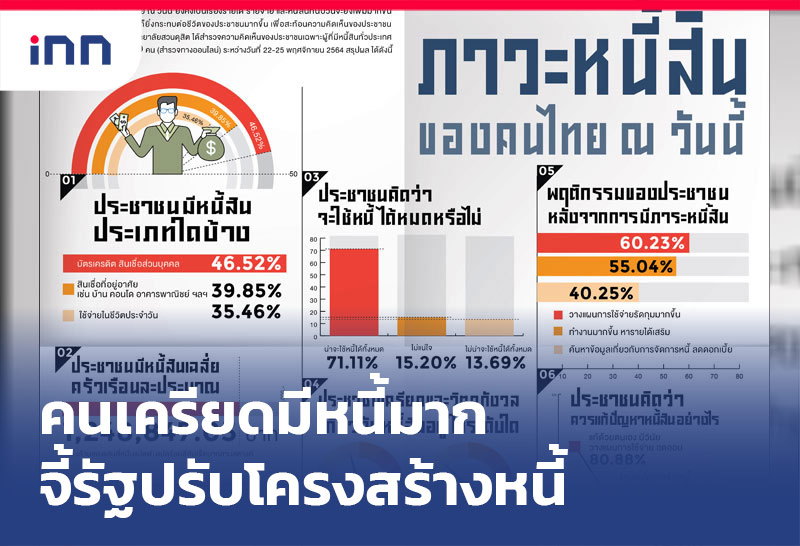 สวนดุสิดโพล คนเครียดมีหนี้สินมาก ขอรัฐปรับโครงสร้างหนี้ เพิ่มค่าเรงขั้นต่ำ เพิ่มรายได้
