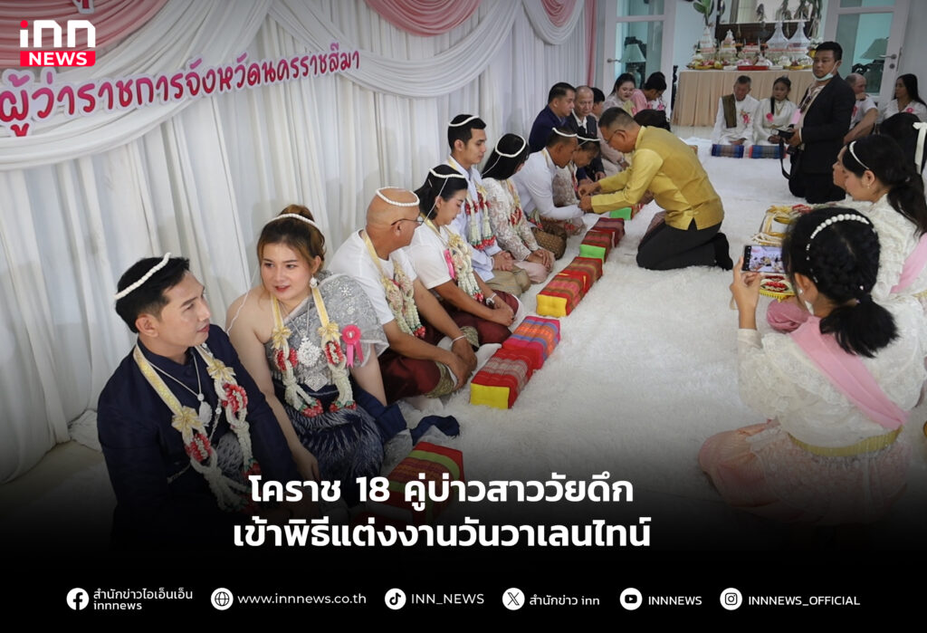 โคราช 18 คู่บ่าวสาววัยดึก เข้าพิธีแต่งงานวันวาเลนไทน์