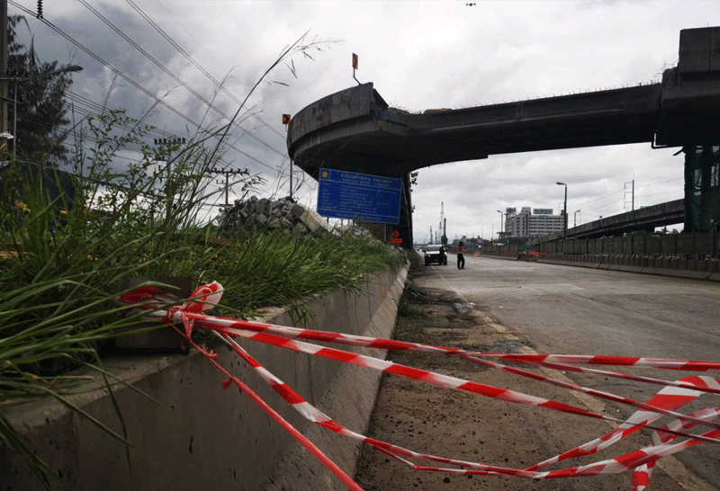 จนท.เตรียมเข้าตรวจสอบหาสาเหตุแผ่นปูนสะพานกลับรถพังถล่มทับรถปชช.ตาย2เจ็บ2 ยังปิดจราจรกันพื้นที่เพื่อความปลอดภัย