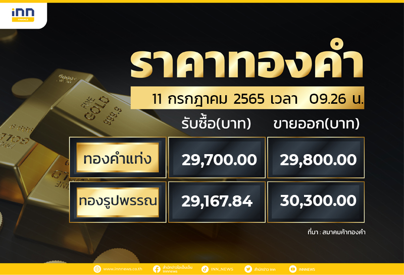 สมาคมค้าทองคำ ประกาศราคาซื้อขายทองครั้งที่ 1 เมื่อเวลา 09.26 น. ราคาไม่เปลี่ยนแปลง