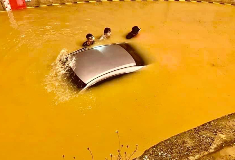 อีกแล้ว..ฝนถล่มบัวใหญ่ น้ำท่วมบ้านเรือนชุมชนตลาดเก่า กว่า 10 ครัวเรือน ขณะรถเก๋งจมอยู่ทางลอดรถไฟ