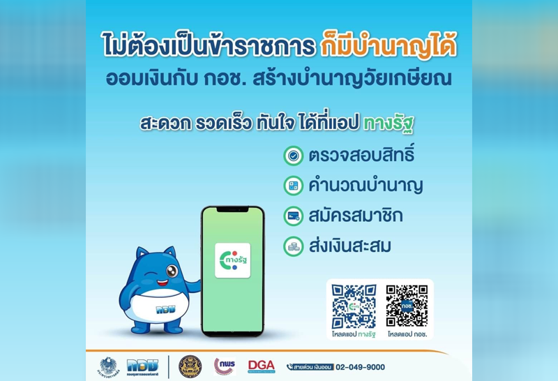 กอช. ร่วมกับ DGA เพิ่มช่องทางการออมผ่านระบบออนไลน์ให้แก่ผู้ประกอบอาชีพอิสระ เช็กสิทธิ์ สมัครสมาชิก ส่งเงินออมสะสม ผ่านแอป "ทางรัฐ" ได้แล้วตั้งแต่วันนี้