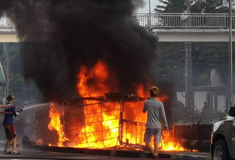กระบะขับมาด้วยความเร็ว พลิกคว่ำไฟลุกไหม้บริเวณ ถนนพระราม 3 ซอย30 มีผู้เสียชีวิต 2 รายติดภายในถูกไฟไหม้
