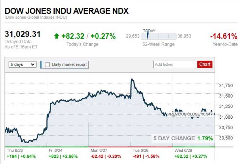 ดาวโจนส์ปิดบวก 82.32 จุด น้ำมัน ทองลง