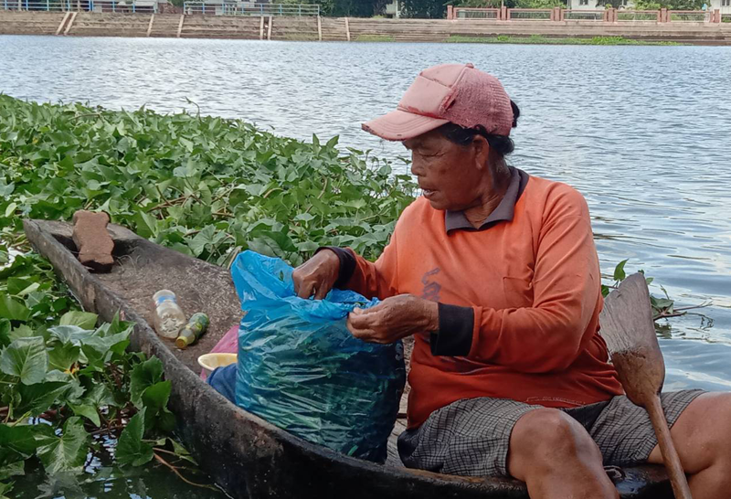ยายชาวพิมายเก็บผักบุ้งขายสู้วิกฤตของแพง