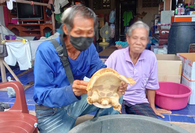 ฮือฮาชาวบ้านโคราช ดักจับปลาได้ตะพาบสีทอง ชาวบ้านแห่ส่องเลขเด็ด เพราะเชื่อว่านำโชคมาให้
