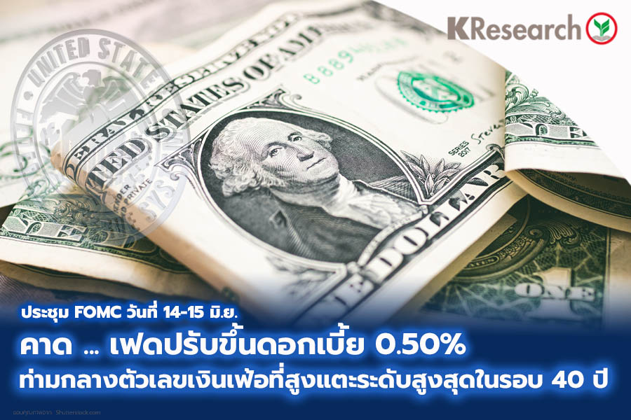ศูนย์วิจัยกสิกรไทย คาด เฟดขึ้นดอกเบี้ยอีกร้อยละ 0.50 ในการประชุมวันที่ 14-15 มิ.ย. ท่ามกลางเงินเฟ้อสูงสุดในรอบ 40 ปี