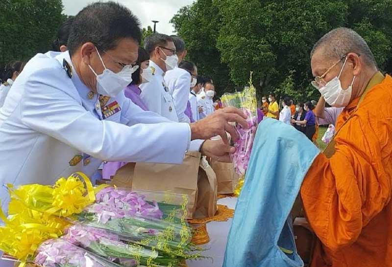 ผวจ.ปราจีนฯนำพสกนิกร’ สวมชุดปกติขาว-สีม่วง จัดพิธีทำบุญตักบาตร ถวายพระราชกุศล วันเฉลิมพระชนมพรรษา สมเด็จพระราชินี