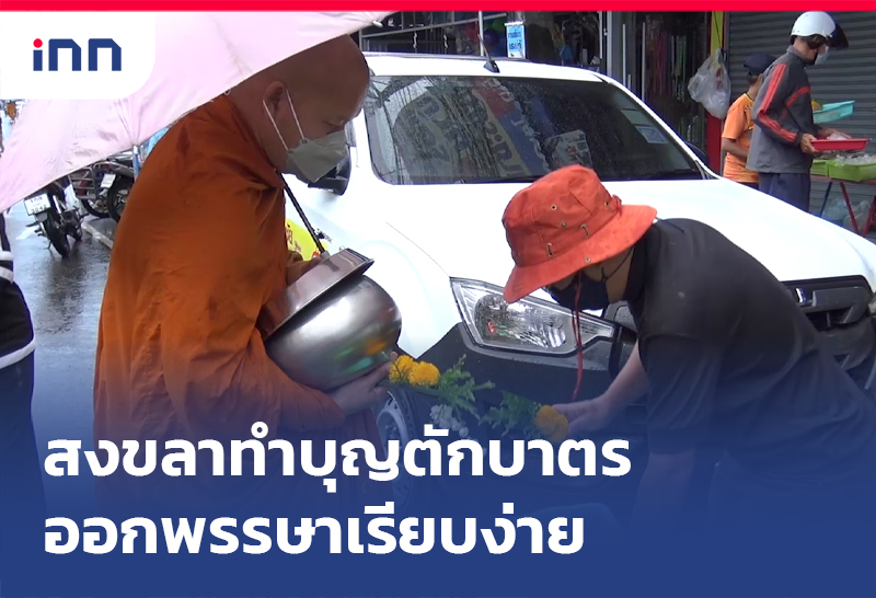ชาวสงขลาทำบุญตักบาตรพระสงฆ์ในวันออกพรรษา ท่ามกลางสายฝนที่ตกโปรยปรายเพื่อความเป็นสิริมงคลแก่ตนเองและครอบครัว