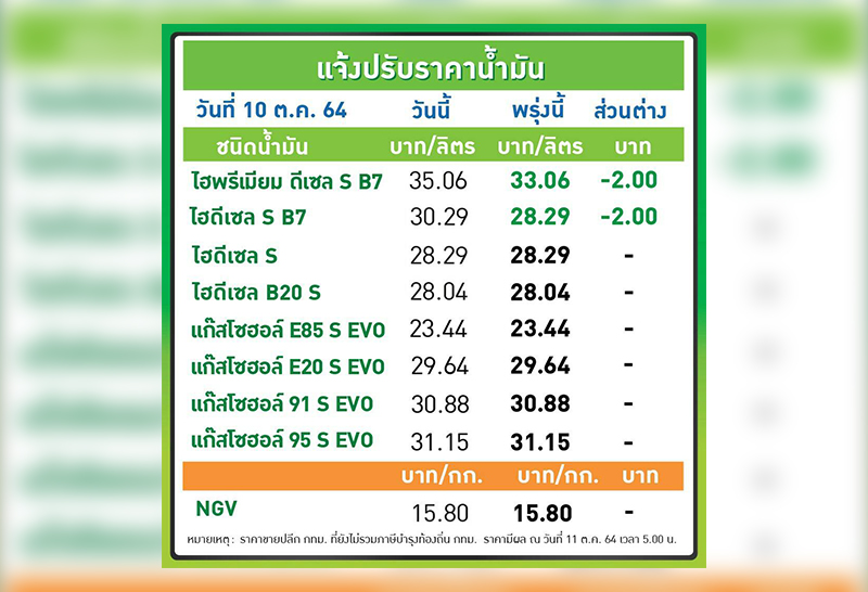 ปตท.บางจาก ประกาศปรับลดราคาน้ำมันดีเซลB7ลง 2 บาทต่อลิตร แตะ28.29 บาท คงเบนซินโซฮอล์มีผลพรุ่งนี้