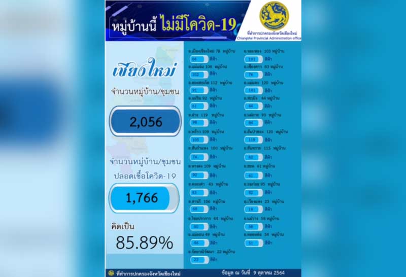 เชียงใหม่เผย กว่า 1,766 หมู่บ้าน ไม่พบผู้ติดโควิด-19 ในหมู่บ้าน มี 5 อำเภอไร้ผู้ติดโควิดทั้งอำเภอ
