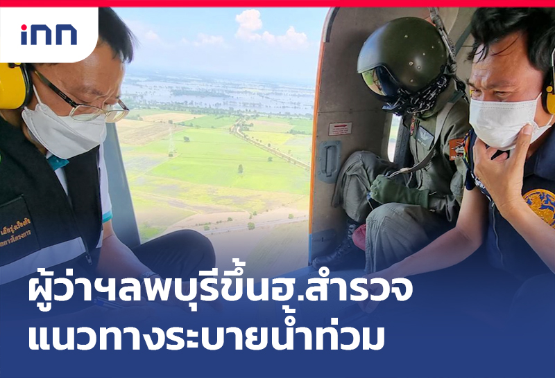 ผู้ว่าฯลพบุรี ขึ้นฮ.สำรวจแนวทางระบายน้ำท่วม ห่วงพื้นที่ท้ายน้ำได้รับผลกระทบหนัก