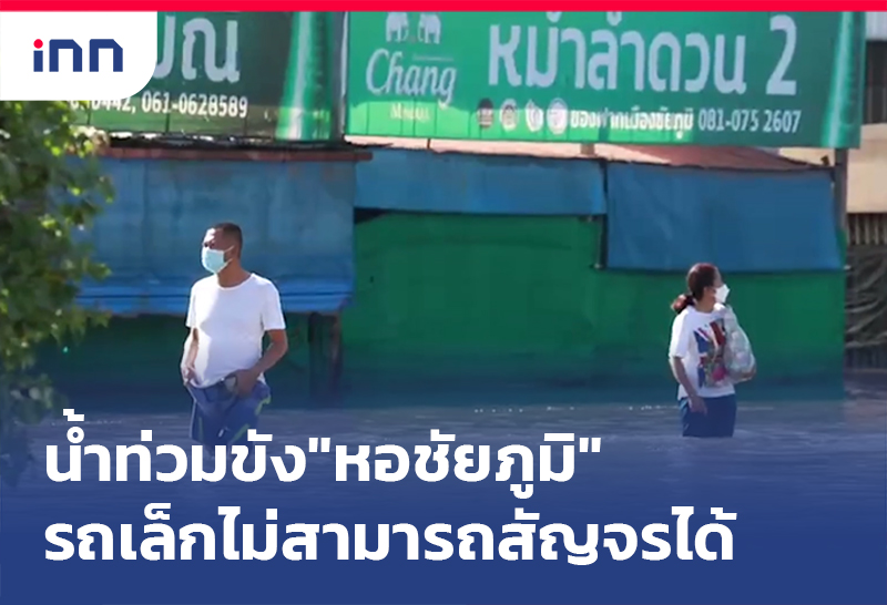 น้ำท่วมขัง “หอชัยภูมิ” รถเล็กไม่สามารถสัญจรได้ ขอความร่วมมือรถใหญ่ ขับช้าๆ เพราะทำบ้านเรือนประชาชนเสียหายจากมวลน้ำ