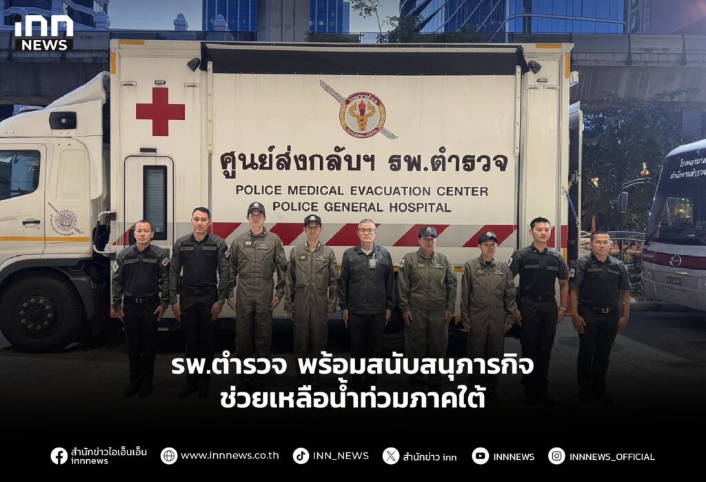 โรงพยาบาลตำรวจ พร้อมสนับสนุนภารกิจช่วยเหลือประสบอุทกภัย ในพื้นที่ภาคใต้พร้อมให้บริการทางการแพทย์ ดูแรักษาพยาบาลอย่างเต็มที่ มุ่งเน้นบูรณาการความร่วมมือทุกภาคส่วน