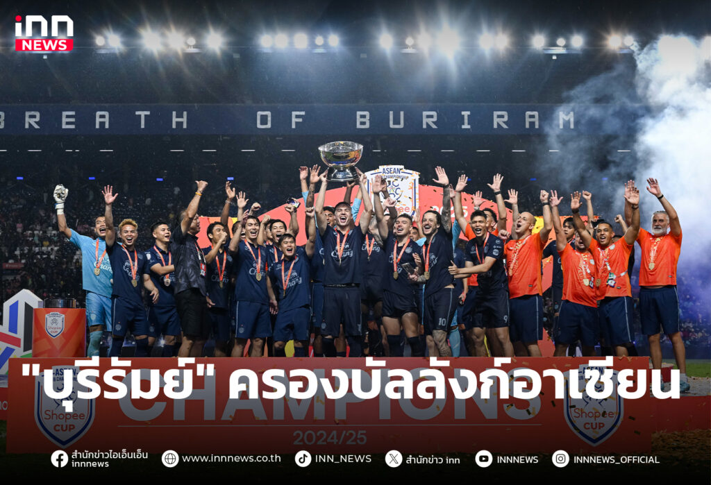 "ปราสาทสายฟ้า" บุรีรัมย์ ยูไนเต็ด ต่อเวลาเสมอ คองอัน ฮานอย 3-3 ก่อนดวจุดโทษเอาชนะทีมจากเวียดนาม 3-2 คว้าแชมป์สโมสรอาเซียนไปครองสุดระทึก