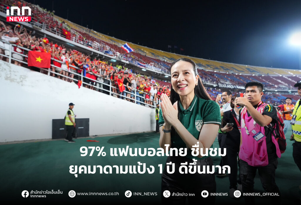 97% แฟนบอลไทย ชื่นชม สมาคมกีฬาฟุตบอล ยุค #มาดามแป้ง 1 ปี ดีขึ้นมาก-โดดเด่นเรื่องความโปร่งใส