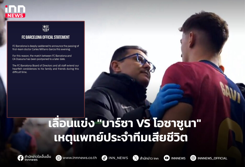 เลื่อนแข่ง ”บาร์ซา VS โอซาซูนา” เหตุแพทย์ประจำทีมเสียชีวิต