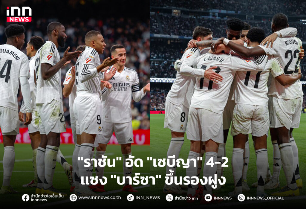 เรอัล มาดริด แซงหน้า บาร์เซโลนา ขึ้นเป็นรองจ่าฝูงได้สำเร็จ หลังเปิดรังอัด เซบีญา 4-2 ในศึกลา ลีกา สเปน เมื่อวันอาทิตย์ที่ผ่านมา