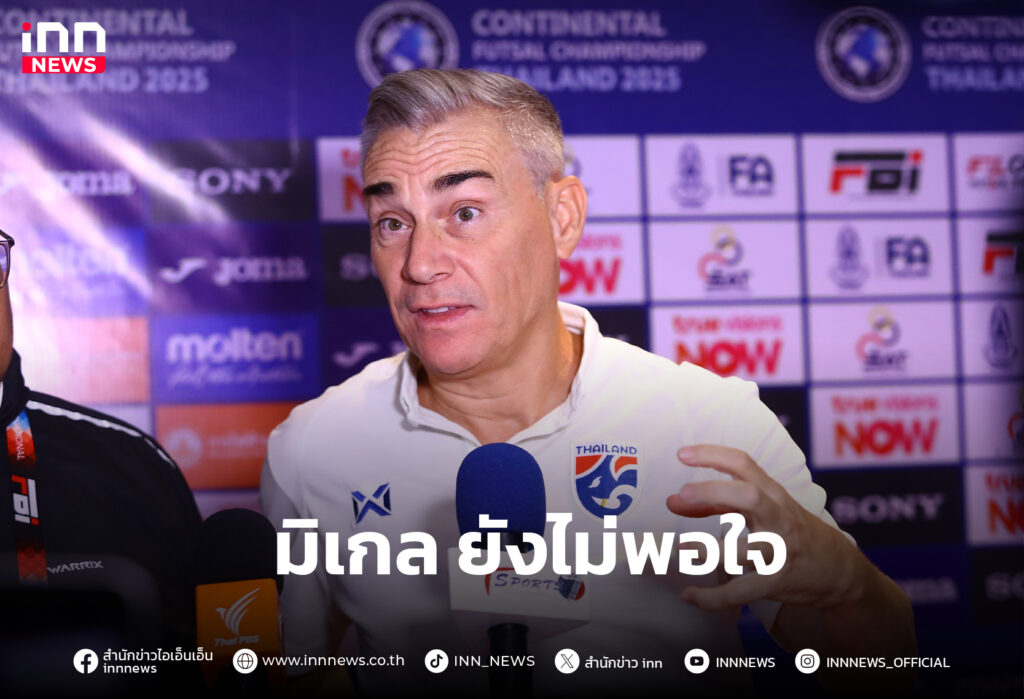 มิเกล โรดริโก้ ยังไม่พอใจ เกมประเดิมอัด ไชนีส ไทเป 3-0 ศึก Continental Futsal Championship 2025 ครึ่งแรกเกมไม่เข้าเป้า ส่วนครึ่งหลังปรับจูนใหม่ สั่งลูกทีมเล่นให้ผ่อนคลาย มีพัฒนาการที่ดี เสียดายยิงชนเสาชนคานรวมกันถึง 6-7 ครั้ง