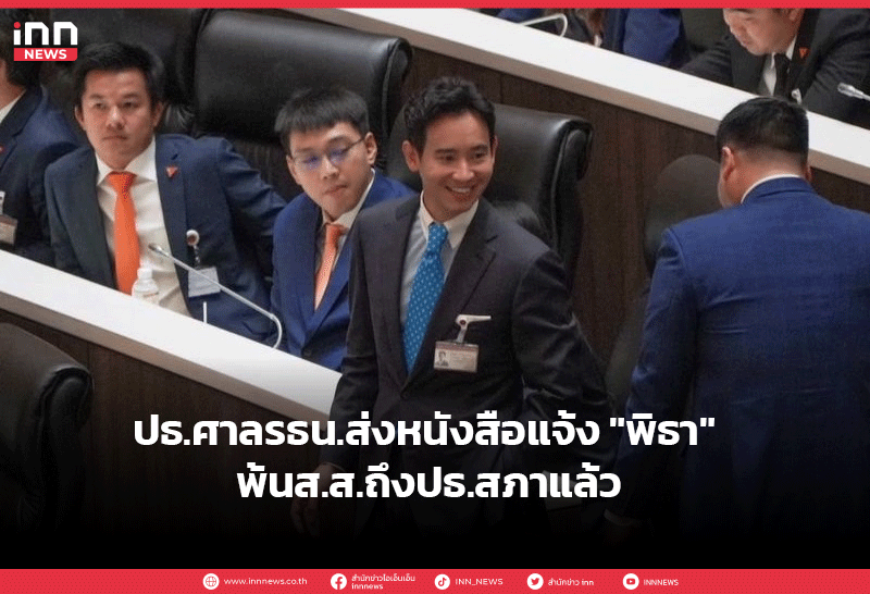 ปธ.ศาลรธน.ส่งหนังสือแจ้ง “พิธา” พ้นส.ส.ถึงปธ.สภาแล้ว