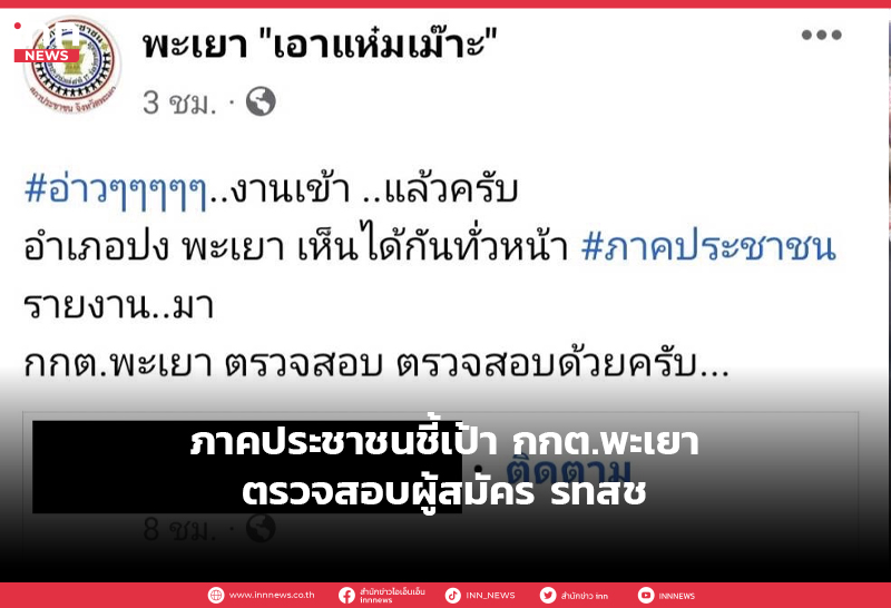 ภาคประชาชนชี้เป้า กกต.พะเยา ตรวจสอบผู้สมัคร รทสช.อำเภอปง หาเสียงเข้าข่ายผิดกฎหมายเลือกตั้ง