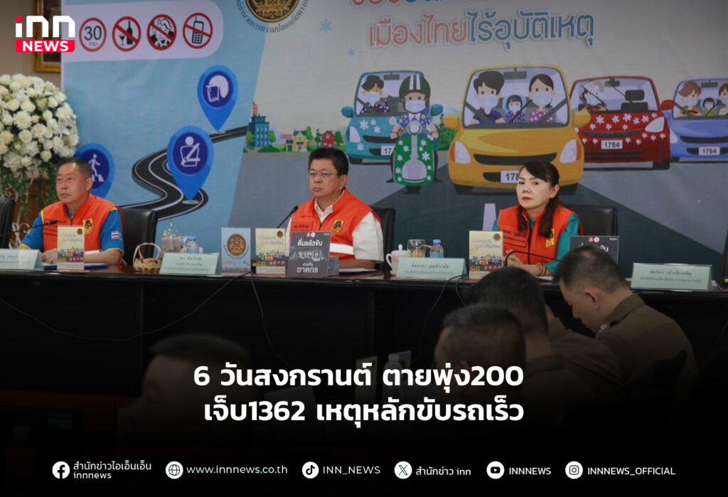 6วันสงกรานต์ ตายพุ่ง200 เจ็บ1362เหตุหลักขับรถเร็ว