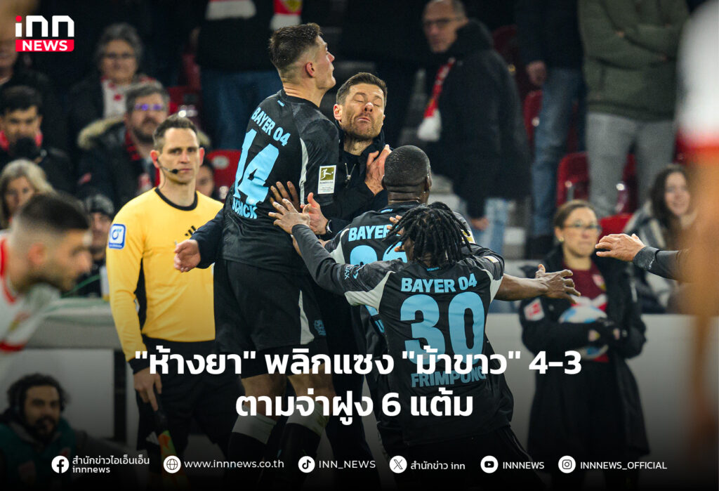 ไบเออร์ เลเวอร์คูเซ่น แชมป์เก่า โชว์ลูกฮึด เมื่อบุกไปไล่แซงเชือด สตุ๊ตการ์ท สุดมัน 4-3 ทำแต้มบี้ บาเยิร์น มิวนิค ทีมจ่าฝูง เหลือ 6 คะแนน
