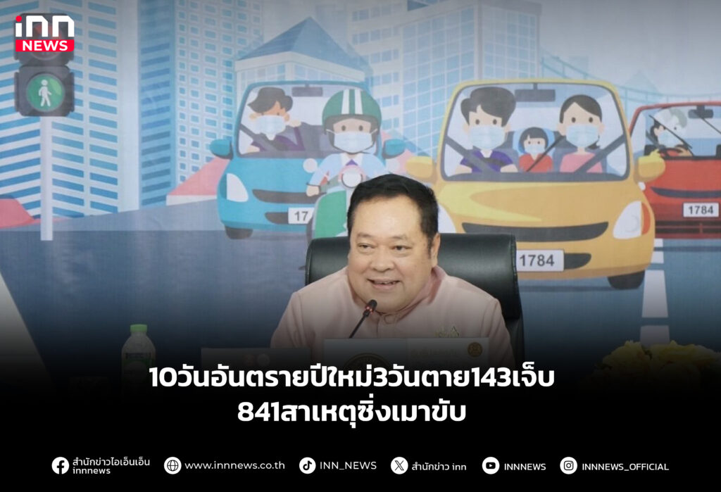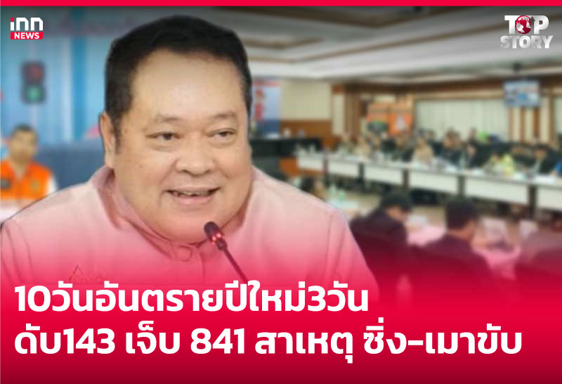 ศปถ. แถลง 10 วันอันตราย ช่วงปีใหม่ 3 วัน เสียชีวิต 143 ราย บาดเจ็บ 841 คน สาเหตุเร็วเกินกำหนด-เมาแล้วขับ พบรถจักรยานยนต์มากสุด