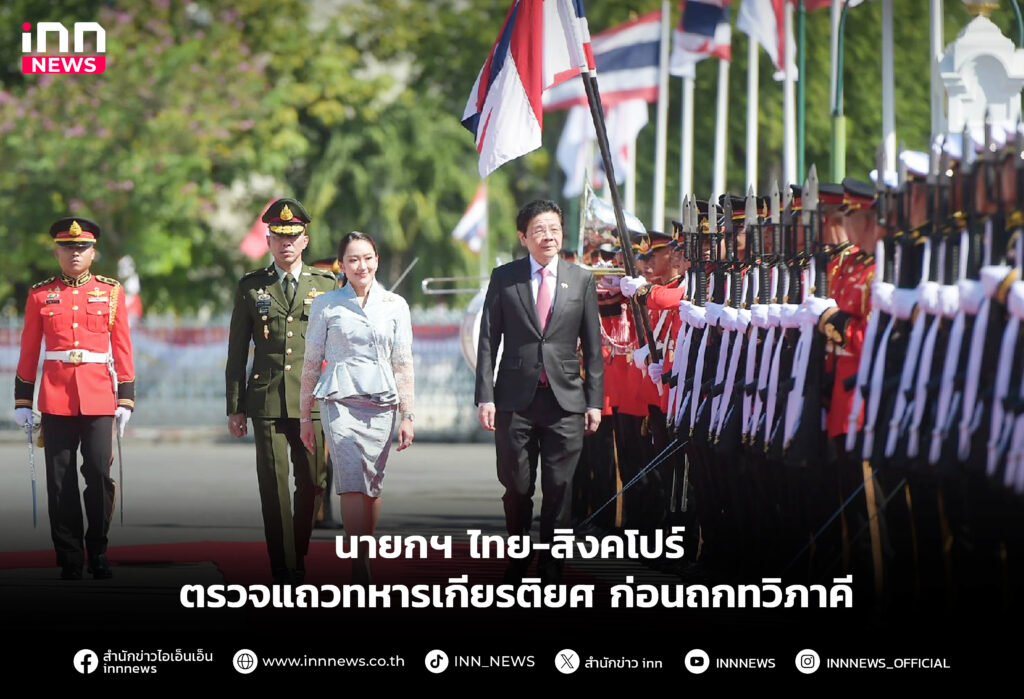 นายกฯไทย-สิงคโปร์ ตรวจแถวกองทหารเกียรติยศ ณ สนามหญ้าหน้าตึกไทยคู่ฟ้า ทำเนียบรัฐบาล ก่อนหารือทวิภาคี 2 ประเทศ กระชับความสัมพันธ์ระหว่างกัน