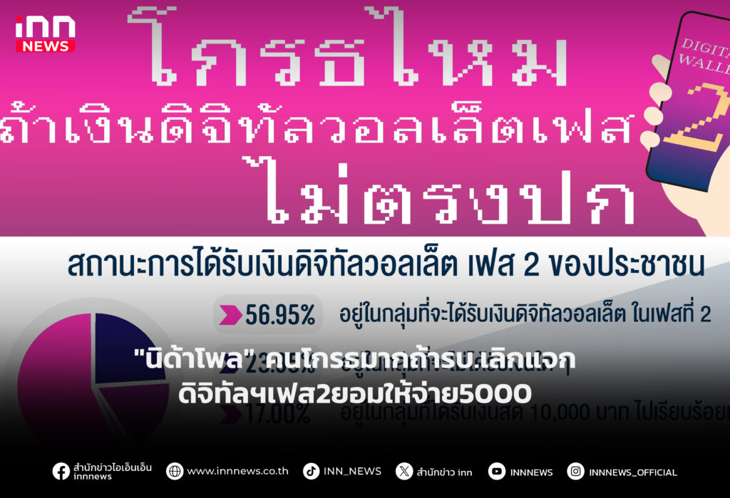 "นิด้าโพล"คน41.58 %โกรธมากถ้ารัฐบาลยกเลิกดิจิทัลวอลเล็ตเฟส2 ชี้รับได้หากเปลี่ยนรูปแบบหรือจ่ายแค่ 5,000