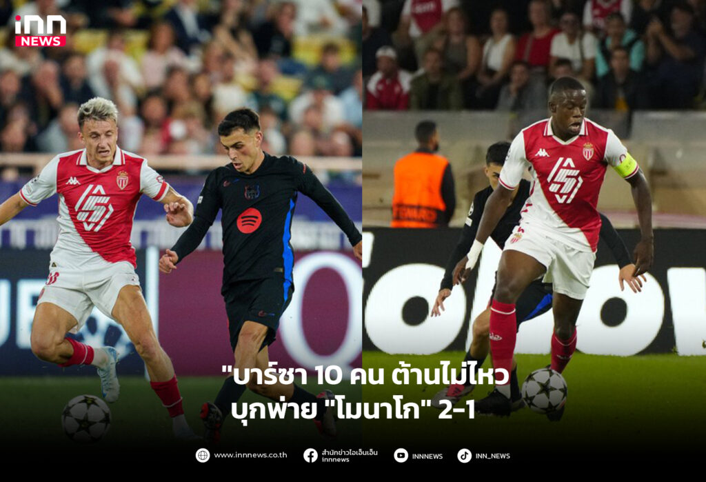 ”บาร์ซา 10 คน ต้านไม่ไหวบุกพ่าย ”โมนาโก” 2-1
