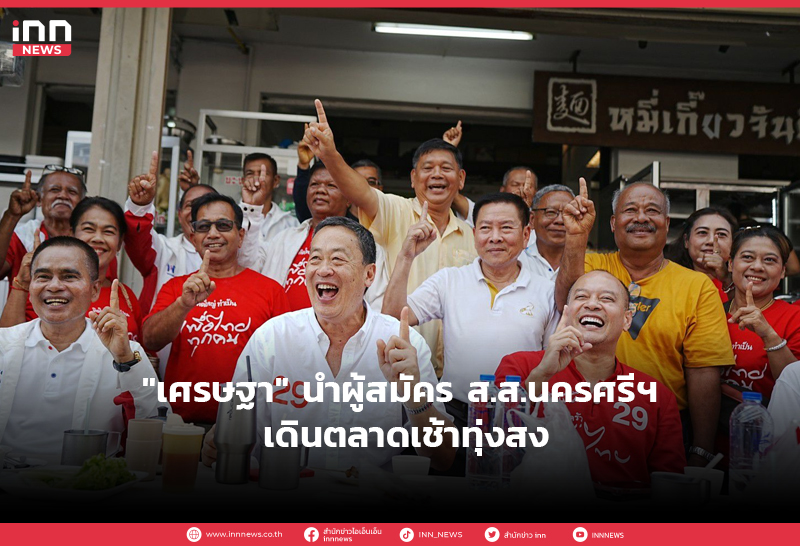 "เศรษฐา" นำผู้สมัคร ส.ส.นครศรีฯ เดินตลาดเช้าทุ่งสง คนขอถ่ายรูปเพียบ พร้อมแวะแคะขนมครก "ณัฐวุฒิ" แซว แคะคะแนนละเอียด ไม่มีตกค้างอยู่ในหลุม เศรษฐา ตอบทันควัน “แคะทุกเม็ด ไม่มีตกหล่น”