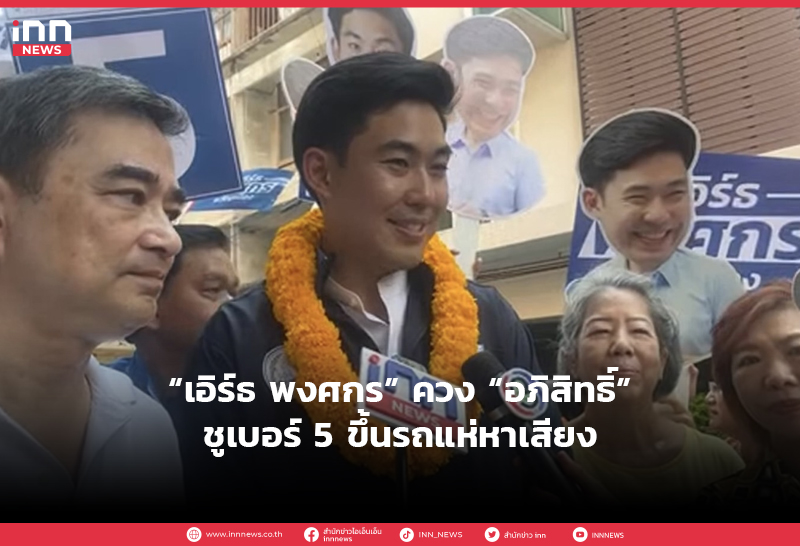 “เอิร์ธ พงศกร” ควง “อภิสิทธิ์” ชูเบอร์ 5 ขึ้นรถแห่หาเสียง