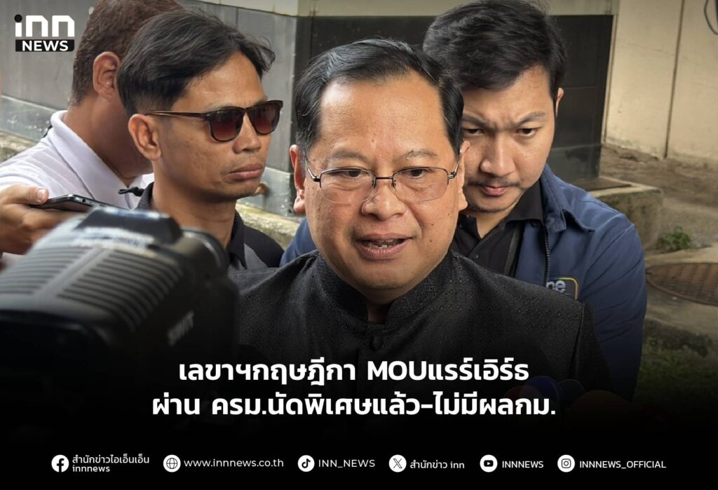 เลขาฯกฤษฎีกา ยัน ลงนามแร่แรร์เอิร์ธ ผ่าน ครม.นัดพิเศษแล้ว ย้ำไม่มีผลผูกพันธ์ทางกฏหมาย ชี้ ไม่ใช่คู่สัญญาเป็นเพียงความร่วมมือ เชื่อสหรัฐฯ ไม่ยกต่อรองภาษี