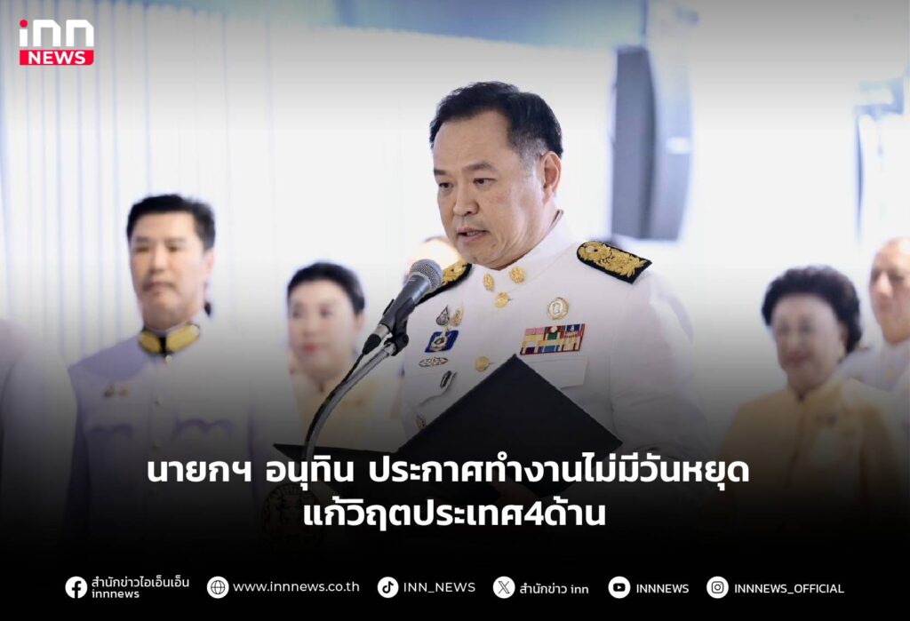นายกฯ อนุทิน ประกาศทำงานไม่มีวันหยุด แก้วิฤตประเทศ4ด้าน