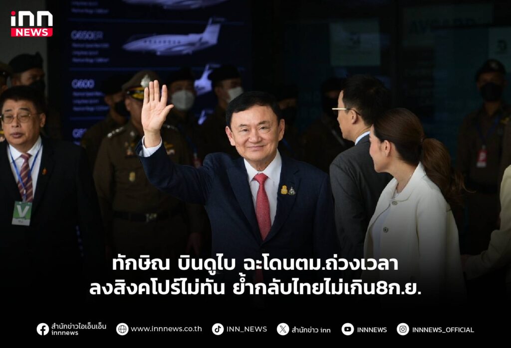 ทักษิณ บินดูไบ ฉะโดนตม.ถ่วงเวลาลงสิงคโปร์ไม่ทัน ย้ำกลับไทยไม่เกิน8ก.ย.