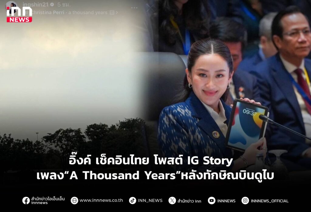อิ๊งค์ เช็คอินไทย โพสต์ IG Story เพลง “ A Thousand Years ” หลัง “ทักษิณ” บิน ดูไบ