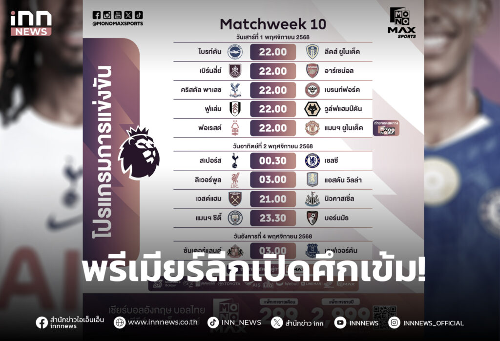 พรีเมียร์ลีกเปิดศึกเข้ม! Monomax ถ่ายครบทุกคู่ “สเปอร์สดาร์บี้เชลซี-ผีบุกเจ้าป่า-หงส์ชนวิลล่า”