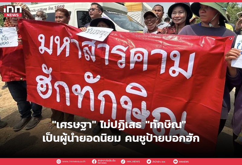 “เศรษฐา” ไม่ปฏิเสธ “ทักษิณ” เป็นผู้นำยอดนิยม คนชูป้ายบอกฮัก